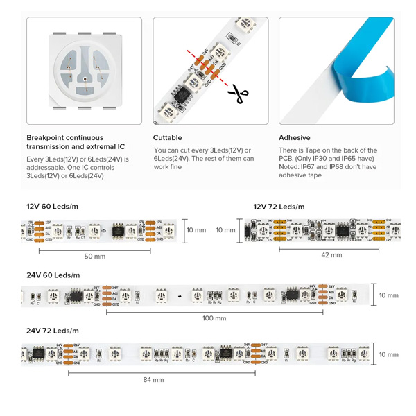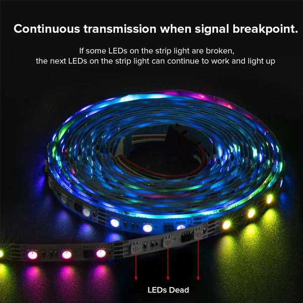 Parallel Protocol:Each point does not affect the work of other points. If some LEDs on the strip light are broken, the next LEDs on the strip light can continue to work and light up