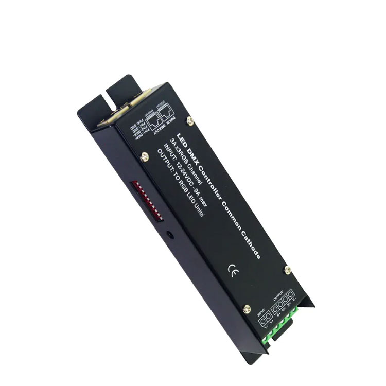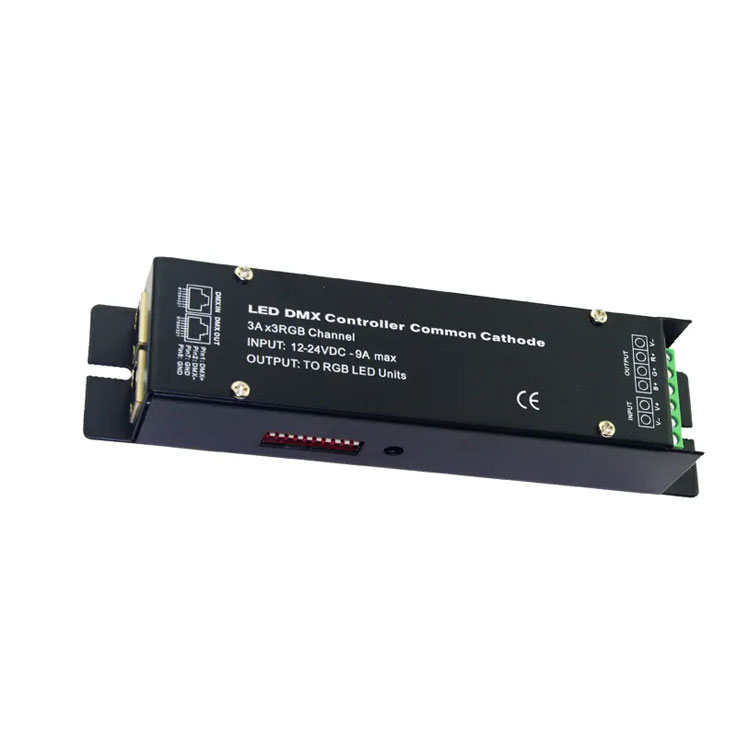 1. Each DMX common controller occupied 3 DMX addresses,switch which is setting DMX original address code from 1 to 9,1 is the lowest,and 9 is the highest,511 address codes could be setted in all .DMX original address code equal aggregate value from 1 to 9,dial the coding switch upwards(ON is setted 1),thevalue of bit can be gotten, on the contrary, the value of bit is 0.For example: if you want to set 37 as the address code , you can only dial down the first ,the third and the sixth code switch value from 1 to 9 is 32+4+1 , that is ,the original address code of DMX512 is 37.