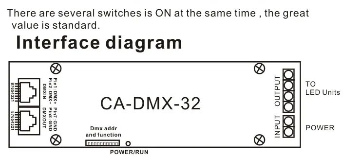 2. DMX signal can be received when coding switch FUN(10)=OFF.