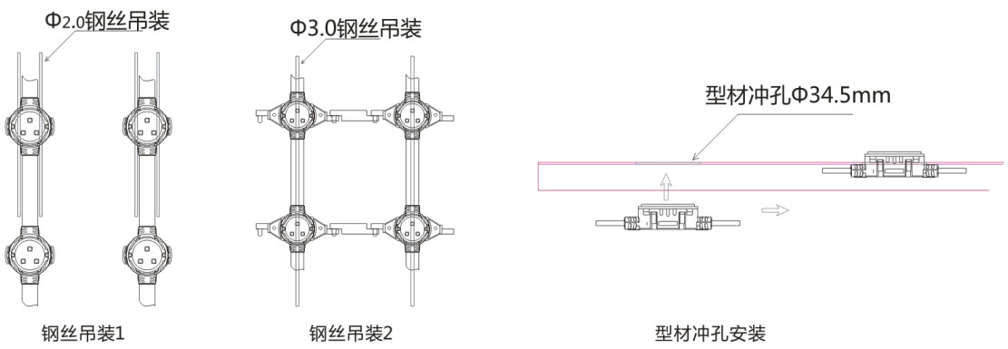 The product's unique design, a variety of installation methods, punching installation, wire lifting, splicing screen installation, glue installation.