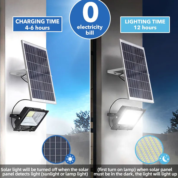 Remote Control SMD ABS Waterproof IP67 60w 100w 200w 300w Courtyard Stadium Outdoor LED Solar Floodlight