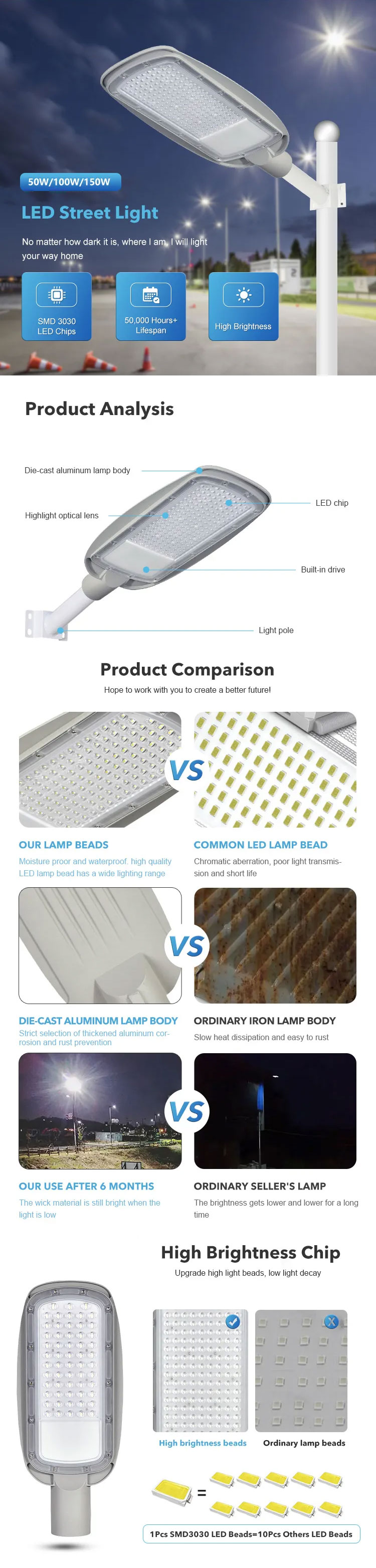 Wholesale SMD Die-casting Aluminum Road Garden Waterproof IP65 Outdoor LED Street Lamp